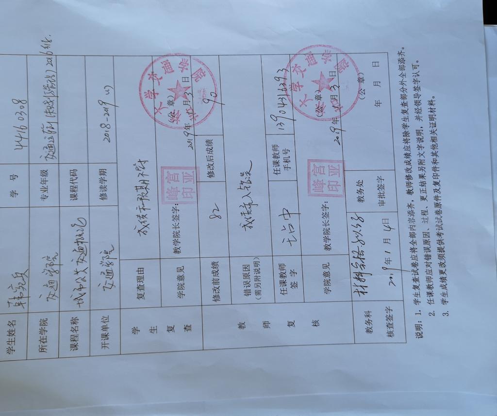2016级韩宛兵同学(学号:44160308)2017-2018-2学期课程成绩更正如下: