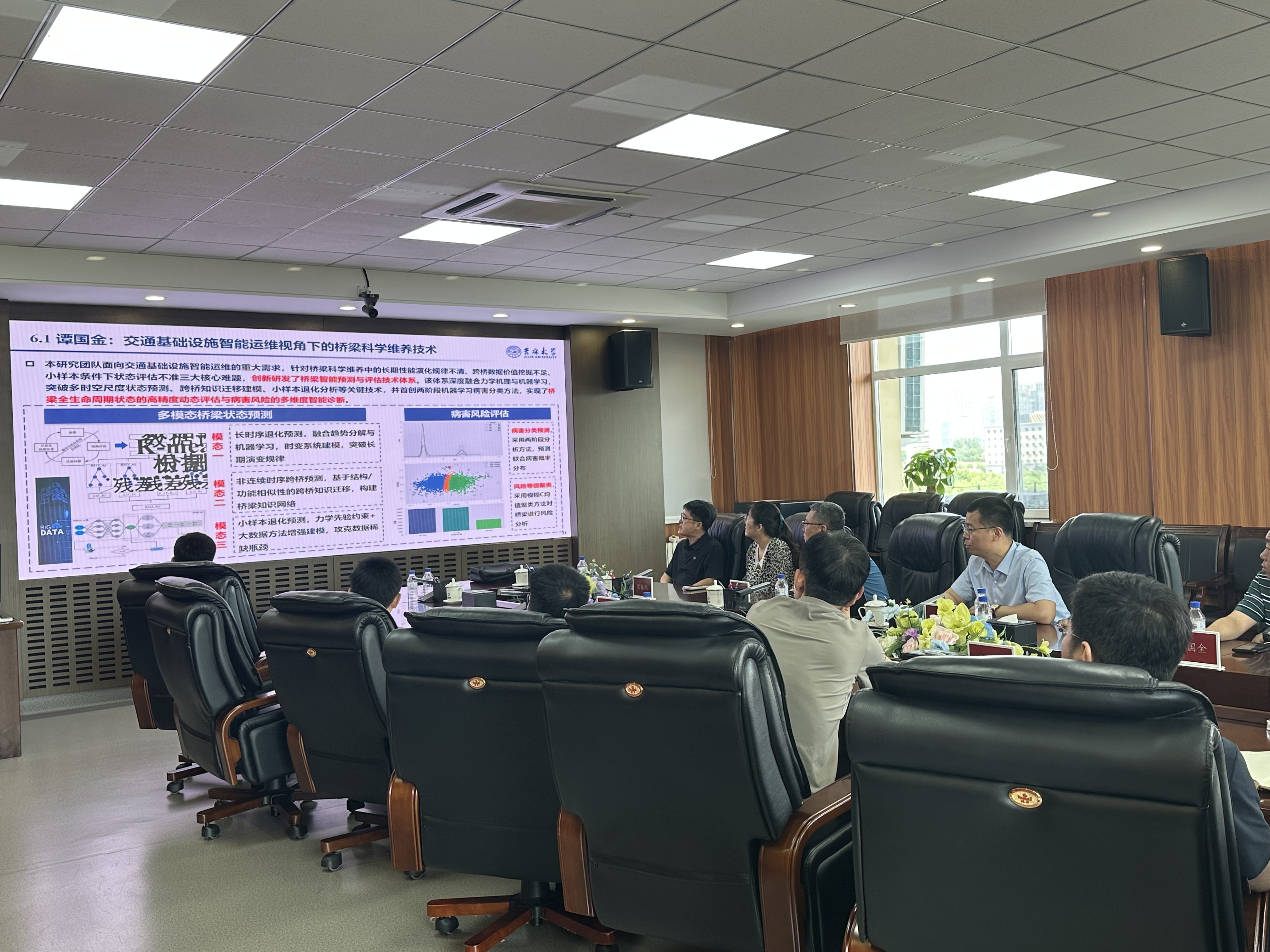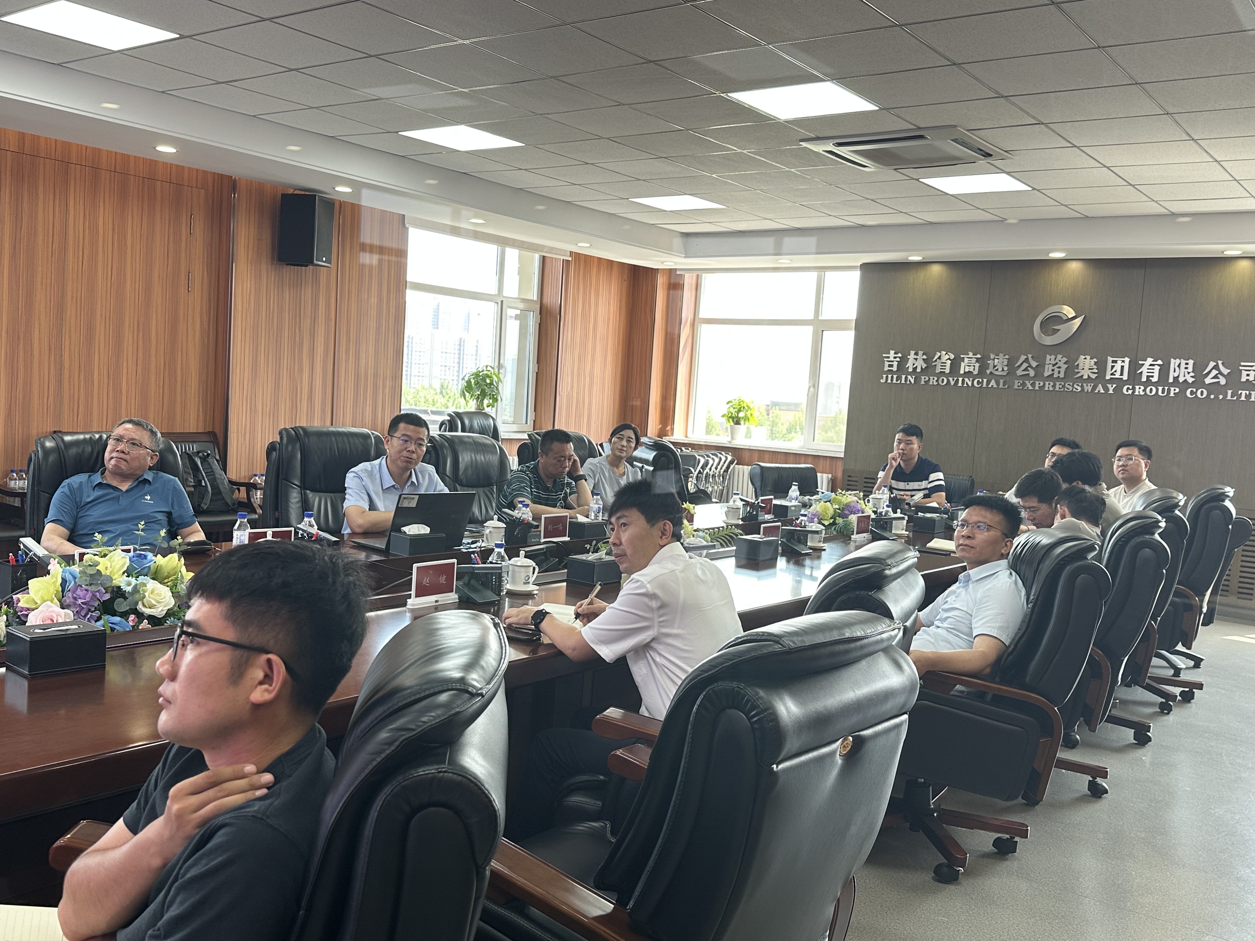 院长别一鸣、院长助理谭国金等一行7人赴吉林省高速公路集团开展交流,集团副总经理杨敏捷、总经理助理赵健、工程管理部主任申发义等8人出席会议。