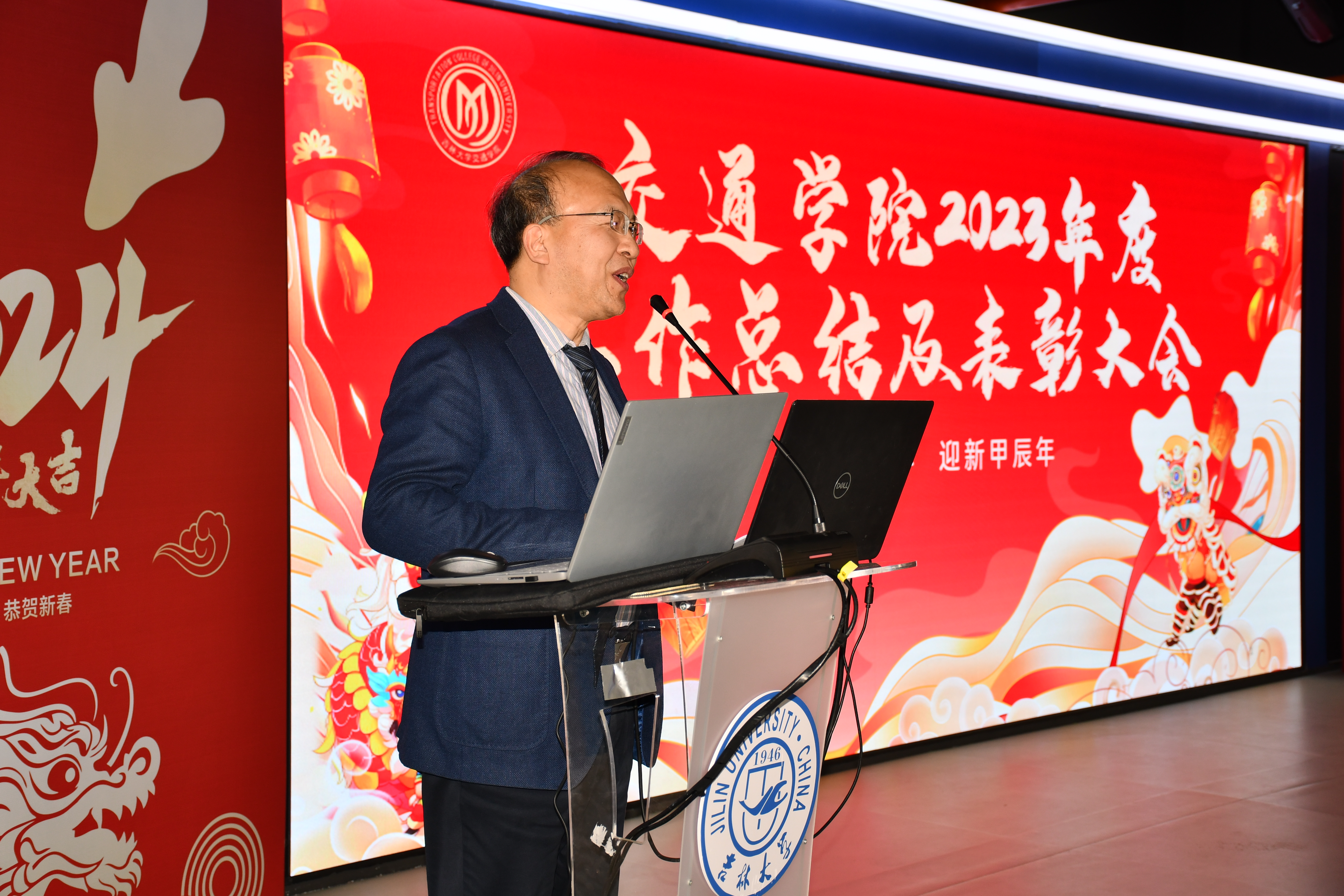 向唐匡人才颁发了证书;向2023年度在科研和教学方面做出突出贡献的教师颁发了奖励证书;为上一届三委会委员颁发了纪念证书;为2022年度和2023年度退休的教职工颁发了纪念品;为2022年度和2023年度新入职的教职工佩戴了吉林大学校徽。