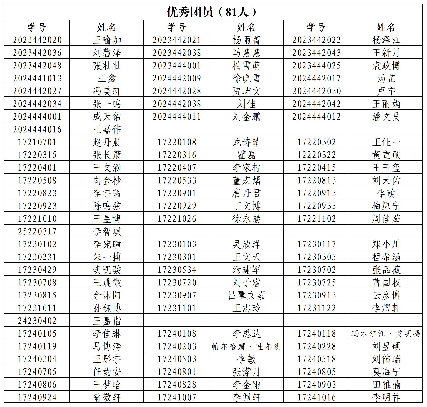 2024年度吉林大学“优秀团员、优秀团干部、先进团支部”推荐人选如下: