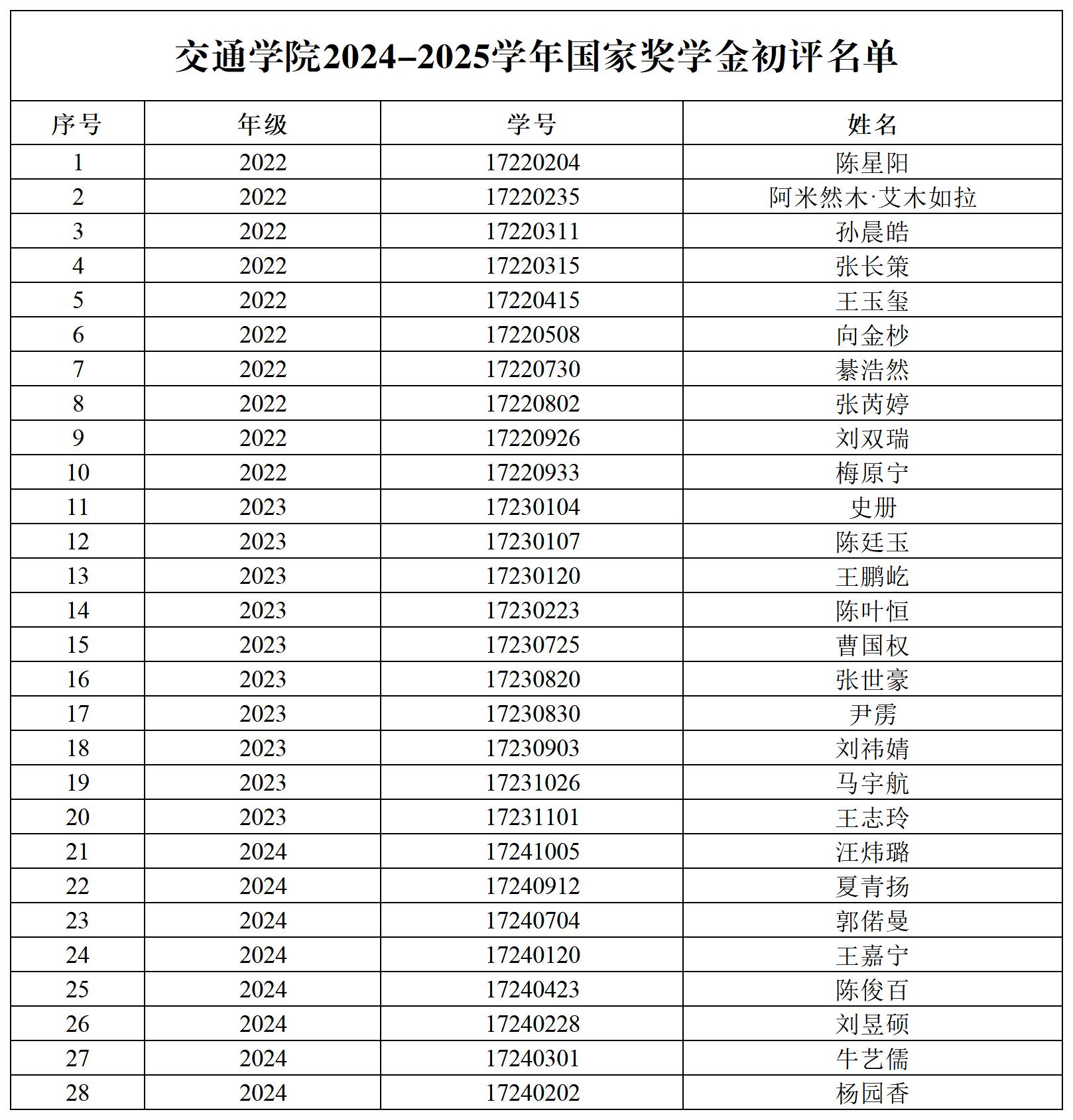 按照党委学生工作部《关于开展2024-2025学年吉林大学本科生国家奖学金评审工作的通知》相关要求,结合《吉林大学本科学生国家奖学金评审办法》(校发〔2020〕249号)有关规定,经学生个人申请、公开答辩,研究提出黑料不打烊