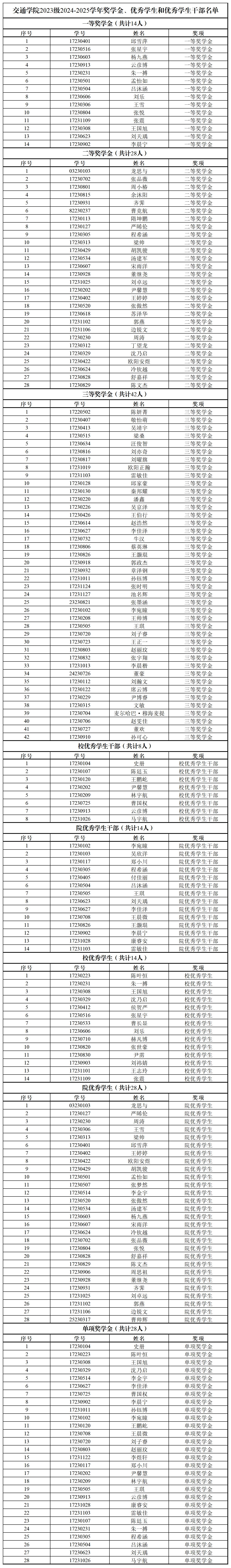 2023级2024-2025学年奖学金、优秀学生和优秀学生干部名单如下: