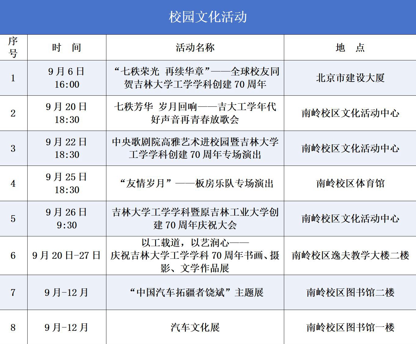 温馨提示:以上活动信息供校友和师生们参考,如有变动或未尽事宜,“吉林大学东区事务办公室”官方微信公众号会及时发布,敬请关注。