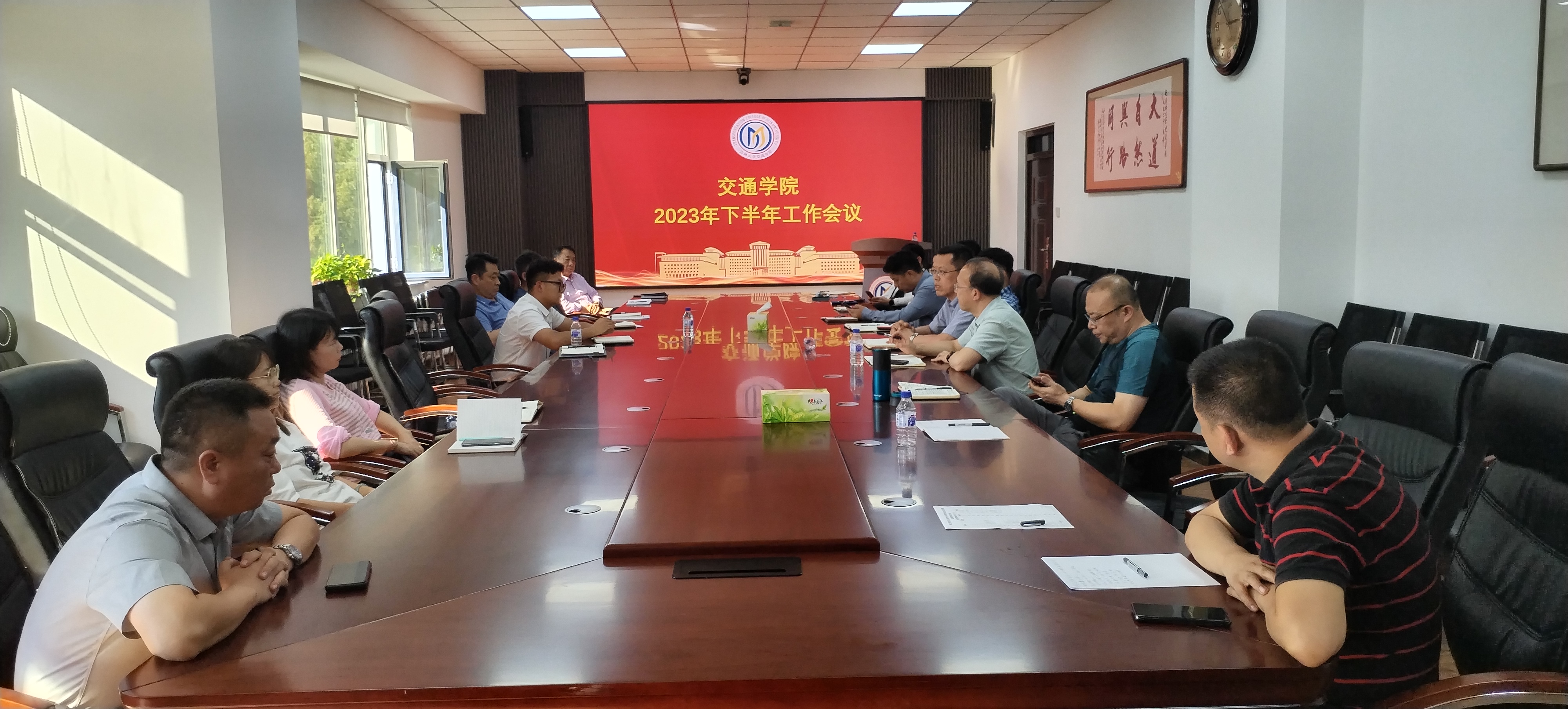 发展的主要问题,并就下半年重点工作进行强调部署:一是提升教育教学水平,提高人才培养质量。做好本科实习实践教学环节安排,加强实验教学中心建设。全力做好交通工程专业工程教育认证;二是推动学科交叉融合,推进科研团队重组,实施有组织科研活动,促进科研成果落地转化。抢抓机遇,坚持走“质量立院、特色兴院、人才强院”的发展道路。三是加强人才引育力度,拓宽人才选用视野和人才引进渠道,构建灵活的人才引进机制,努力营造人才成长的良好氛围;四是扩大行业影响,增强与校友联系,鼓励师生踊跃参加国内外学术会议。